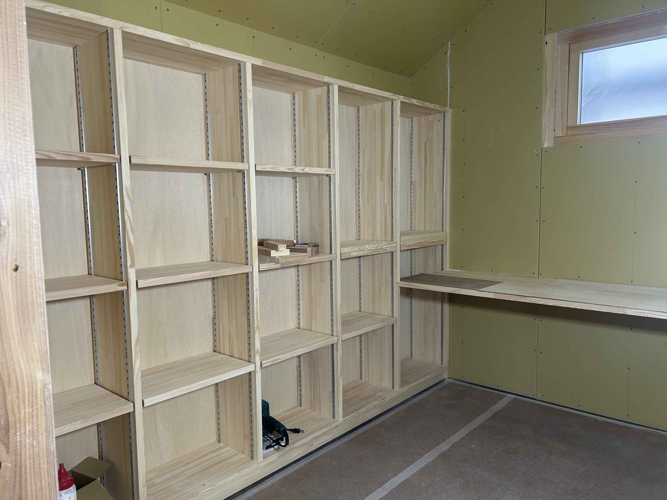 造作で本棚部分を作っています。